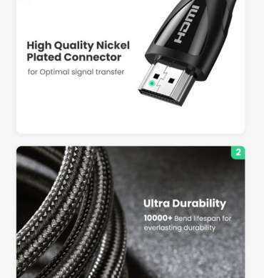 ₨ 12,990.00Original price was: ₨ 12,990.00.₨ 11,499.00Current price is: ₨ 11,499.00.UGREEN Gold Plated 4K HDMI Male to Male Cable – 20m