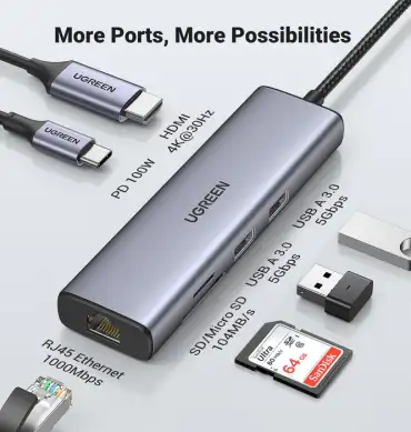 ₨ 13,500.00Original price was: ₨ 13,500.00.₨ 9,999.00Current price is: ₨ 9,999.00.Ugreen 7-in-1 4K HDMI USB C Hub 4K HDMI