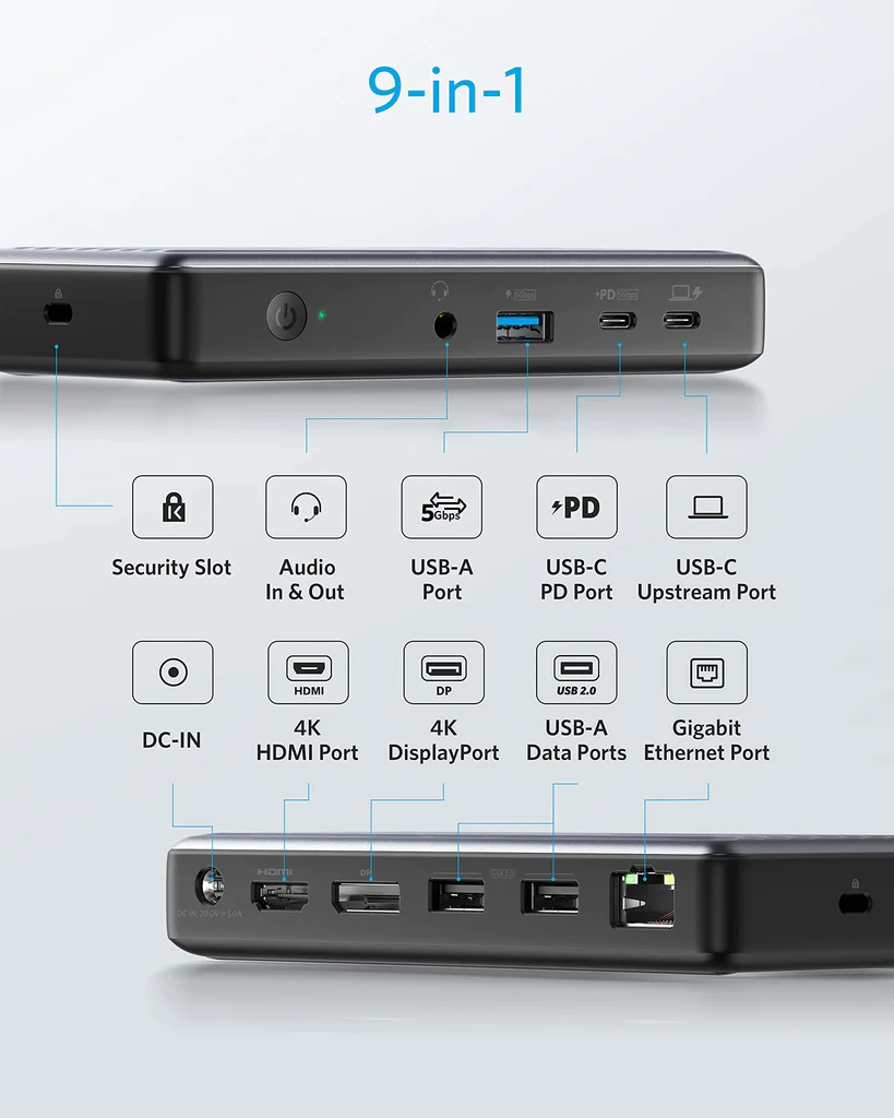 Enhance your connectivity and productivity with the Anker USB-C Dock—PowerExpand 9-in-1 USB-C PD Docking Station. Designed for professionals who need speed, power, and flexibility, this powerful Anker USB-C Dock transforms your laptop into a full-fledged workstation.