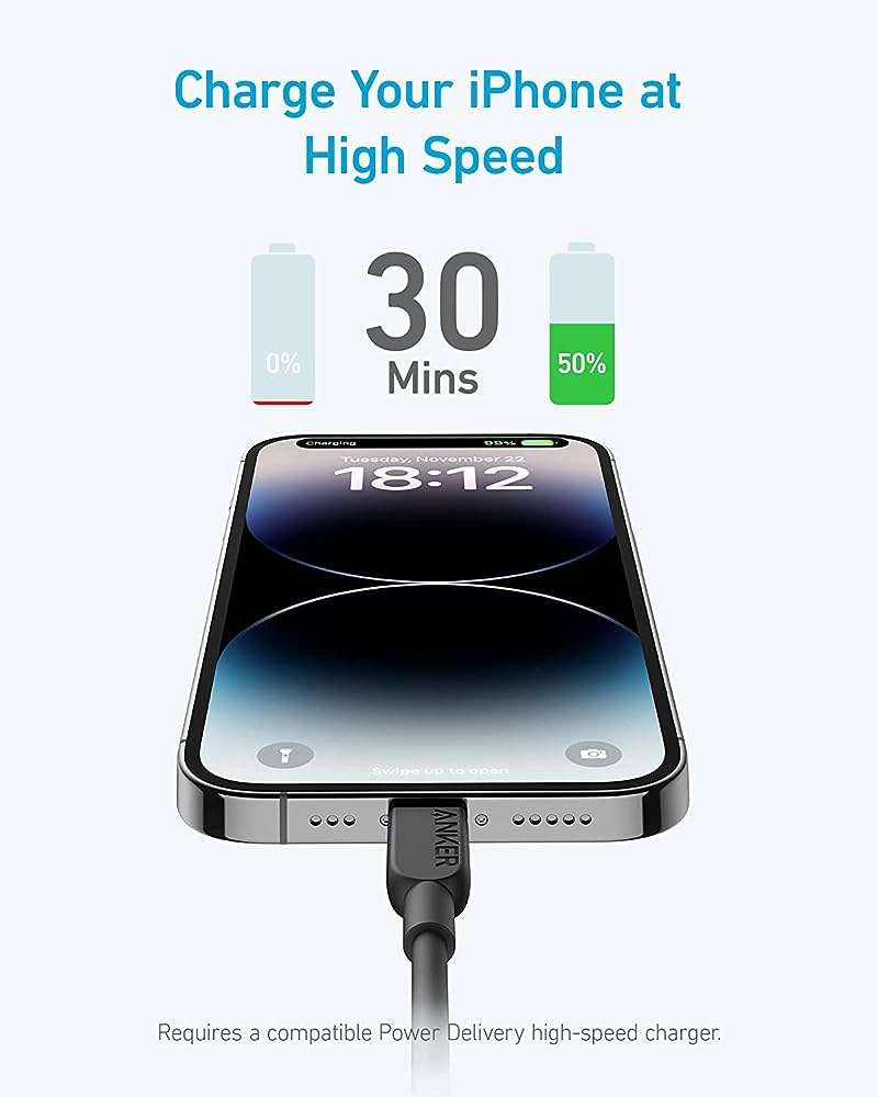 Anker’s advanced technology powers over 80 million users worldwide. Join the community that trusts Anker for high-quality performance. With Power Delivery support, this cable charges your iPhone 14 Pro up to 50% in just 30 minutes. Just pair it with a compatible USB-C Power Delivery charger (not included) to enjoy rapid charging.
