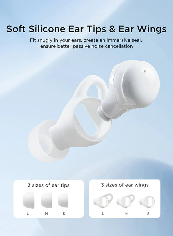 Comfort is key, especially when wearing earbuds for hours. That’s why the JR-TS2 comes with soft, wraparound silicone ear wings. These are gentle on the skin and designed for a secure, non-slip fit. The ergonomic design ensures they stay in place whether you’re lying down, turning over, or on the go.