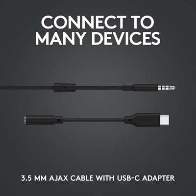 With multi-device compatibility, the Logitech G333 connects easily through the 3.5mm audio jack. For additional flexibility, the included USB-C adapter allows compatibility with even more devices. A built-in inline microphone guarantees clear communication during gameplay or calls, while convenient inline controls let you adjust volume and playback easily.