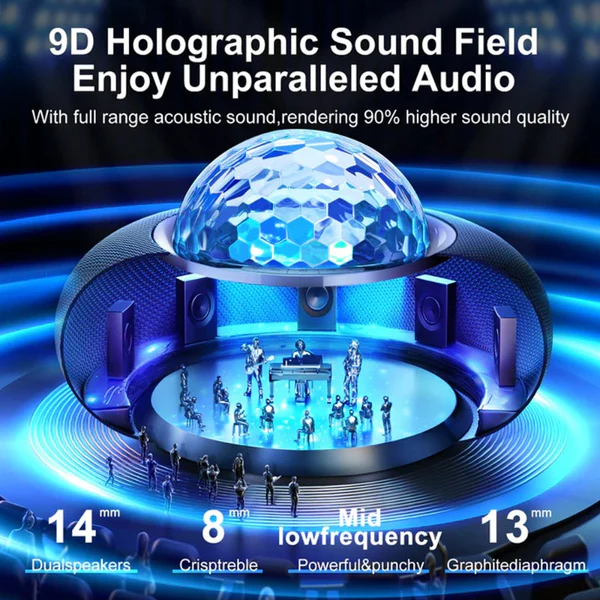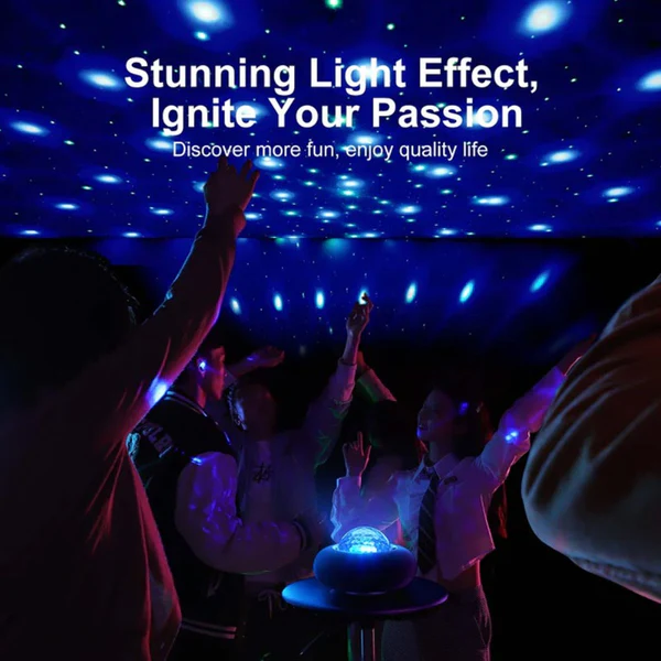 Enjoy vibrant RGB lighting effects with 7 customizable modes that sync with your music and create the perfect ambiance. The speaker also features a spectacular laser magic ball light effect and starry sky projection, covering over 40㎡, making it the perfect centerpiece for indoor parties and festive events.