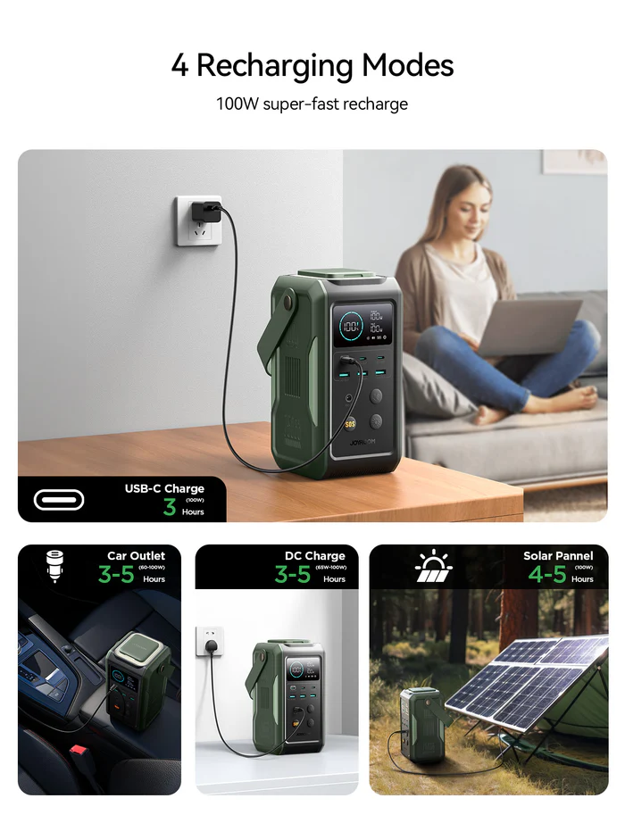 Whether you’re outdoors or off-grid, recharge easily via the 100W DC port or pair it with solar panels for ultimate freedom and eco-friendly charging. Wrapped in an aesthetically pleasing olive green design, this power bank blends modern style with rugged practicality.