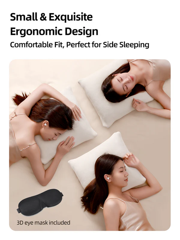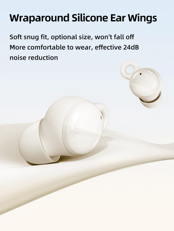 The ultra-compact and ergonomic design ensures that the earbuds sit snugly in your ears without causing discomfort—even during long hours of sleep. With wraparound silicone ear wings, they provide a secure and skin-friendly fit, making them ideal for all-night use.