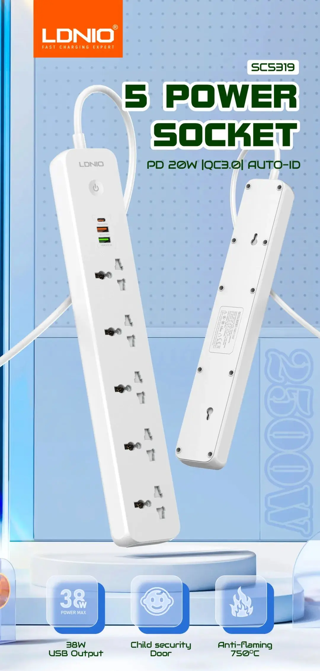 With its sleek and modern design, this power strip complements any workspace or home interior. Whether for a professional setup or everyday use, the LDNIO Defender Series Power Extension offers a smart and secure way to power your devices.