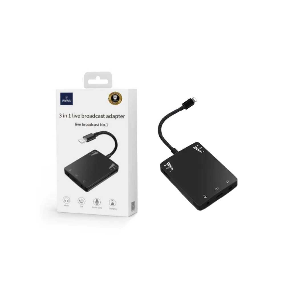 The Wiwu 3-in-1 Live Broadcast Adapter combines essential functions in one sleek device. It features: